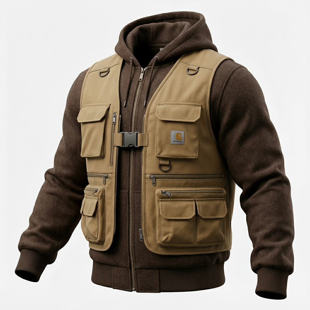 Men's American Workwear Style Suspenders Paired With A Hoodie