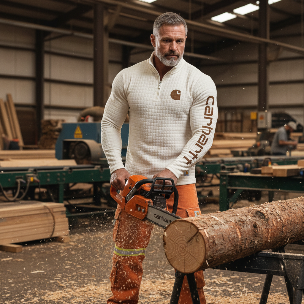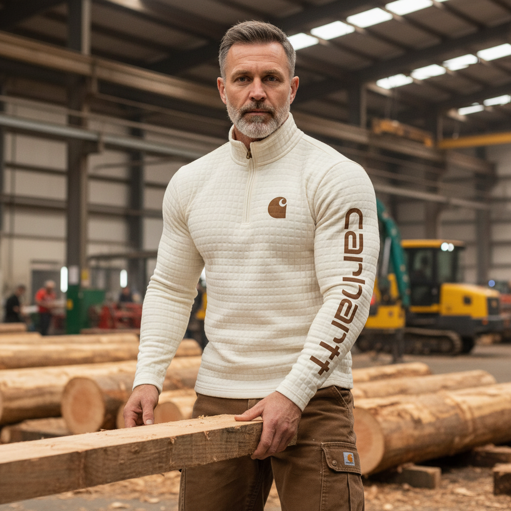 • Design Elements: Chest pocket with logo patch, subtle grid pattern