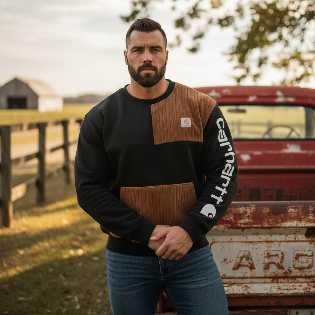 Men's Vintage Color Block Corduroy Panel Sweatshirt