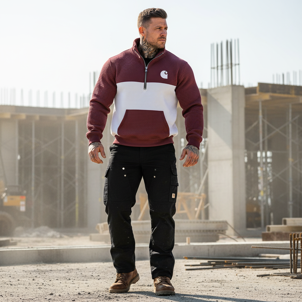 • Detail Features: Half-Zip Front Closure, Chest Logo Patch, Front Kangaroo Pocket, Ribbed Cuffs and Hem