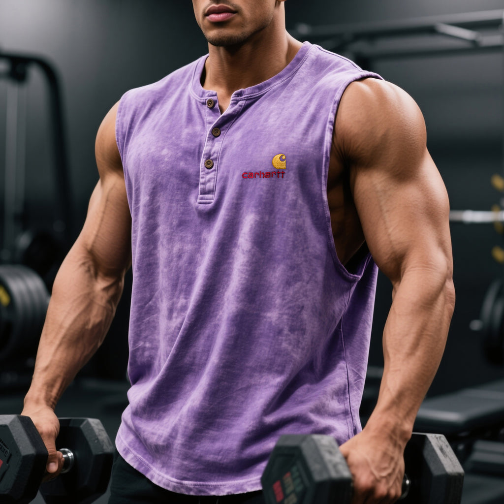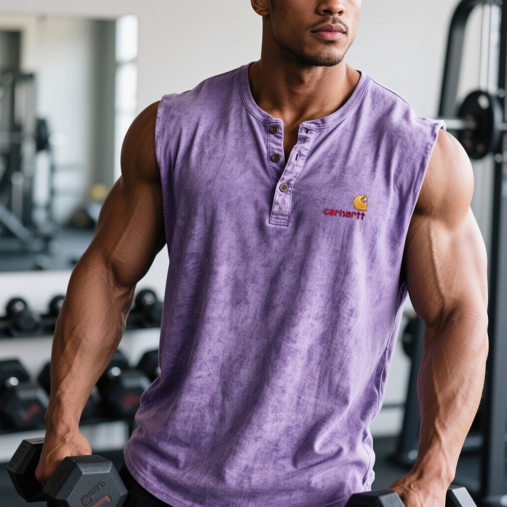 Oversized, Distressed, Vintage-style Washed Sleeveless T-shirt Top For Fitness Training And Home Wear.